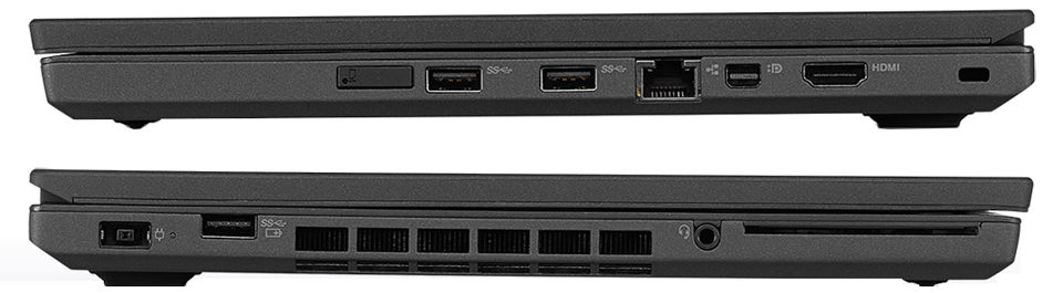 سمت چپ لپ تاپ برای درگاه ورودی شارژر، پورت USB 3.0، جک ۳.۵ میلی‌متری صدا و کارتخوان است. پورت‌هایی که روی لبه‌ی سمت راست وجود دارد پورت HDMI، mini DisplayPorts، پورت LAN و دو پورت USB 3.0 است که در مجموع T460P دارای سه پورت یو‌اس‌بی می باشد. به علاوه همانگونه که اشاره شد پشت دستگاه کاملا خالی است و هیچ درگاهی روی آن وجود ندارد.