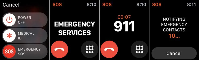 اگر جزو دارندگان مدل سلولی سریهای 5، 6 یا سری هفت اپل واچ هستید، امکان تماس با خدمات اورژانس از طریق ساعت هوشمندتان وجود دارد. علاوهبراین، قابلیت مذکور صرفنظر از موانع یا محل زندگی، از تماسهای بینالمللی با خدمات اورژانس پشتیبانی میکند. بهعنوان مثال اگر یک آمریکایی به لندن برود و نیاز به کمک داشته باشد، واچ او بهجای 911 با 999 تماس میگیرد. دکمهی کنار اپلواچ را چند ثانیه فشار دهید تا نمایشگر برای Power OFF و Medical ID و Emergency SOS باز شود. همچنین، میتوانید دکمهی Emergency SOS را بهسمت راست جابهجا کنید یا دکمهی کنار اپلواچ را نگه دارید. پس از شمارش معکوسی کوتاه، اپلواچ با خدمات اورژانس تماس میگیرد. اگر بهصورت تصادفی شمارش معکوس را فعال کردید، میتوانید دکمهی کنار اپلواچ را رها کنید یا اگر بهصورت تصادفی با اورژانس تماس گرفتید، دست خود را روی صفحهنمایش نگه دارید و سپس روی End Call بزنید. ناگفته نماند ازطریق صفحهنمایش Medical ID در اپلیکیشن Health آیفون هم میتوانید تماس با اورژانس را اضافه کنید.