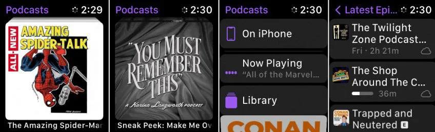 غول فناوری مستقر در کوپرتینو اپلیکیشن جذابی برای پادکستها در نظر گرفته است که امکان دانلود پادکست روی آیفون و گوش دادن به آنها روی اپلواچ وجود دارد. برای شنیدن پادکست به رابط کاربری watchOS 5 یا بالاتر نیاز دارید و اگر اپلواچ مجهز به LTE داشته باشید، بدون نیاز به شبکهی Wi-Fi نزدیک، امکان گوش دادن به پادکستها وجود دارد. برای دسترسی به کتابخانهای از پادکستهای اشتراکی یا اپیزودهای تکی، اپلیکیشن پادکست را باز کنید. از پادکست پلیر میتوانید تنظیماتی مثل Pause ،Resume، جلوزدن بهاندازهی سی ثانیه یا بازگشت به عقب بهاندازهی پانزده ثانیه، تغییر سرعت و صدا را انجام دهید. علاوهبراین، امکان انتقال پادکستها از گوشی به اپلواچ وجود دارد و اگر علاقهای به فضای اپلیکیشن Podcasts اپل ندارید، میتوانید برنامههای دیگری مانند Downcast و Overcast و Pocket Casts را هم امتحان کنید.