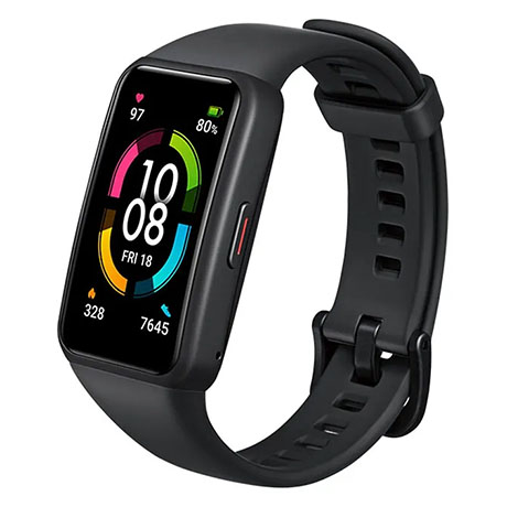 نسل ششم از مچ بندهای هوشمند آنر بند تغییرات ظاهری خیلی زیادی را تجربه کرده و حالا شبیه به یک ساعت هوشمند کوچک شده است. آنر بند 6 گجتی خوشساخت و باکیفیت بهشمار میرود که یکی از بزرگترین نمایشگرها را در بین تمام مچبندهای هوشمند دارد. علاوهبر نمایشگر بزرگ 1.47 اینچی، از دیگر امکانات بارز آنر بند 6 میتوانیم به حسگر سنجش اکسیژن خون، سیستم هوشمند سنجش ضربان قلب بهصورت 24 ساعته، رصد کردن 10 نوع ورزش، باتری قدرتمند با شارژدهی دوهفتهای، امکان شخصیسازی پوسته ساعت و از همه مهمتر، پشتیبانی کامل از زبان فارسی اشاره کنیم.